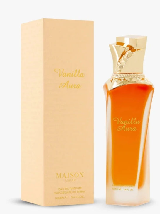 Vanilla Aura est un parfum gourmand orienté vanille créé par Maison Asrar, lancé en 2025. Il est unisexe et joue sur une vanille douce, chaleureuse et gourmande, accompagnée d’autres notes sucrées et boisées :