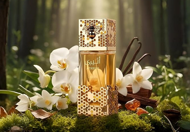 Atheeri est un parfum floral gourmand doux et aérien, conçu pour tous, de la maison Lattafa. Il capture l’essence d’une lumière dorée filtrant à travers un jardin paisible, où la fraîcheur de la rosée du matin se mêle à la douceur envoûtante de la fleur de la passion. En son cœur, un bouquet délicat d’orchidée et de jasmin évoque une élégance intemporelle. Le parfum s’achève sur une étreinte sensuelle de vanille onctueuse et de bois d’ambre riche, laissant derrière lui un sillage doux, chaleureux et captivant.