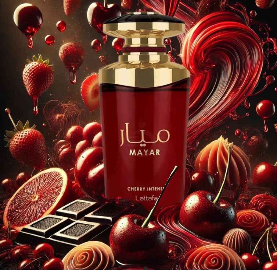 Avec son mélange de cerise juteuse et de notes florales élégantes, **Mayar Cherry** est une fragrance irrésistible qui laisse un sillage chaleureux et inoubliable.